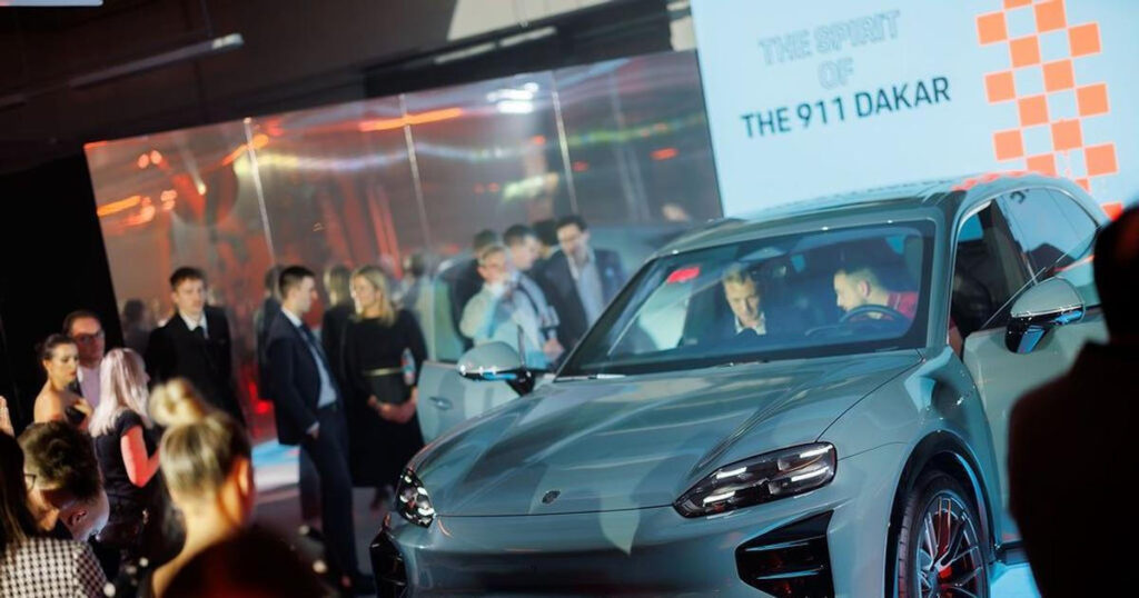 Hvězdou večera bylo nicméně nové Porsche Cayenne Electric. Do Česka se ho tuzemskému zastoupení povedlo dovézt pouhé dva týdny po světové premiéře a asi 10 dní po prvním fyzickém představení auta na akci Porsche of Icons v Dubaji.